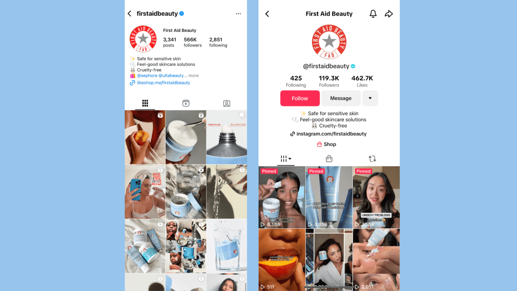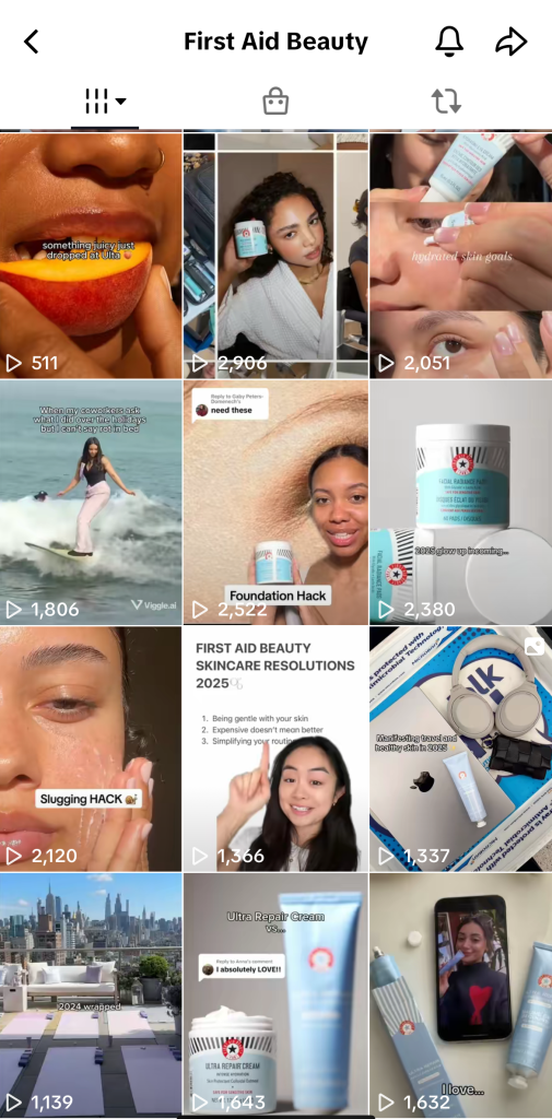 One thing I think First Aid Beauty lacks in their organic content is storytelling. They scratch the surface but don’t go nearly as deep into storytelling as they should. This applies to Instagram and TikTok.
