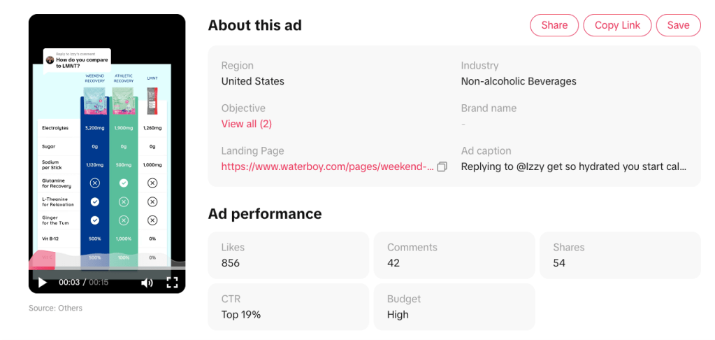 Overall, this ad is effective and it’s clear why it’s performing well on TikTok. I’m even convinced now that I should try Waterboy!