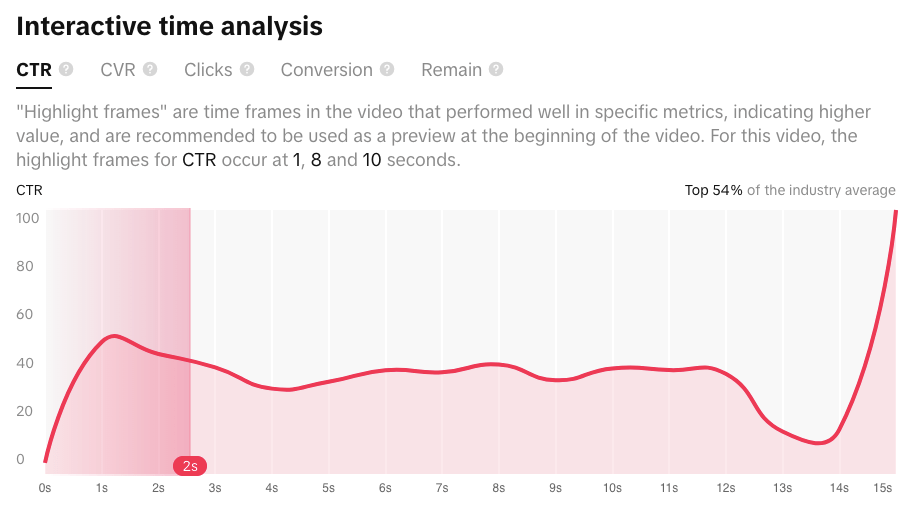 I looked at WordStream’s Facebook Ad Benchmarks to estimate the performance of this ad. Looking at the various industries, I decided Waterboy best fit within fitness. The average click-through rate is 1.01% and the average conversion rate is 14.29% for the fitness industry. When looking at how this ad performed on TikTok, it definitely performed above the industry average. As shown below, this ad had high CTRs and CVRs throughout the video.